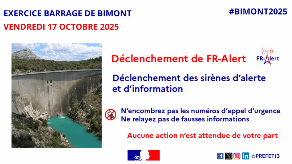 Dans le cadre de la journée nationale de la résilience, la préfecture des Bouches-du-Rhône organise, vendredi 17 octobre 2025, un exercice d’alerte « barrage de Bimont ».